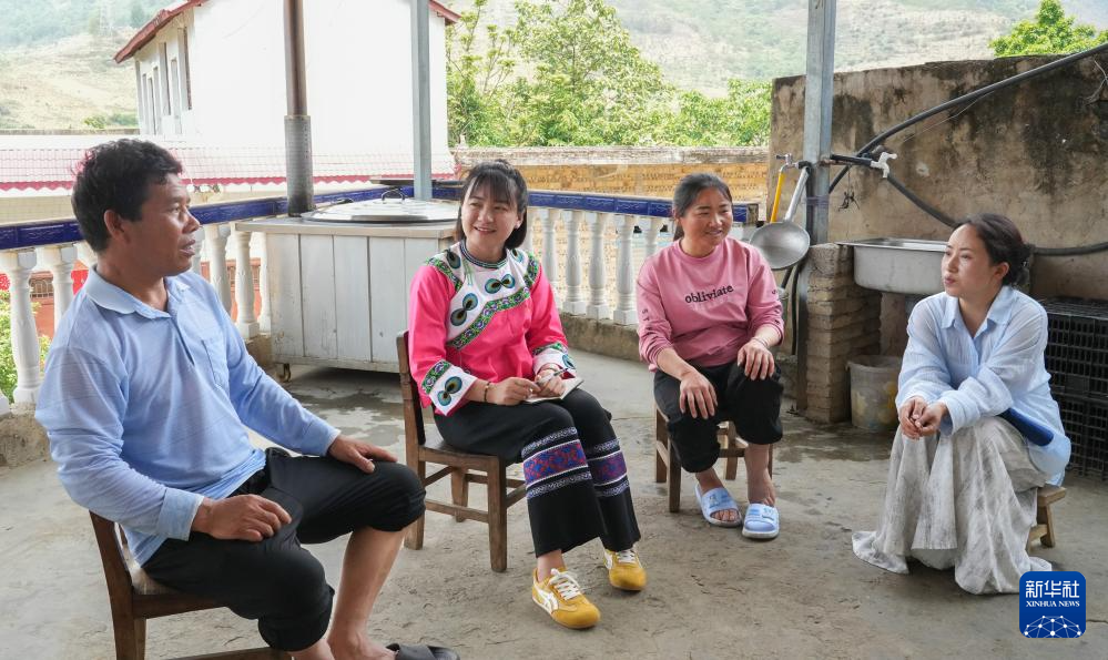 5月8日,卢丹在致富村向村民讲解农业政策。新华社记者 刘续 摄