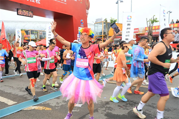 为了给跑者提供优质的参赛体验,赛事组委会在各个环节都做了精心安排,提升赛事运营水平,增强赛事服务保障力度。赛前,在遵义高铁站和新舟机场设置摆渡车,方便外地跑者前往领取参赛物资。比赛当天,赛道沿途设置了充足的饮水站、特色补给站,在关键节点为跑者及时补充能量和水分;22个文艺展演点,恰似城市琴键上跃动的音符,将竞技脉搏与人文韵律编织成流动的盛宴,让奔跑的双脚丈量出诗意的公里刻度。