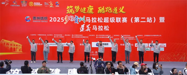 鸣枪仪式上,贵州体育局党委书记、局长马雷,遵义市人民政府副市长吴起,贵州省体育局二级巡视员朱俊华,贵州省文化和旅游厅二级巡视员史静一,贵州省纺织产业发展集团有限责任公司总经理闵江涛等为运动员发令。