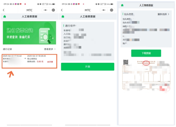 选择需要开票的通行记录,点击【开票】,开票完成!