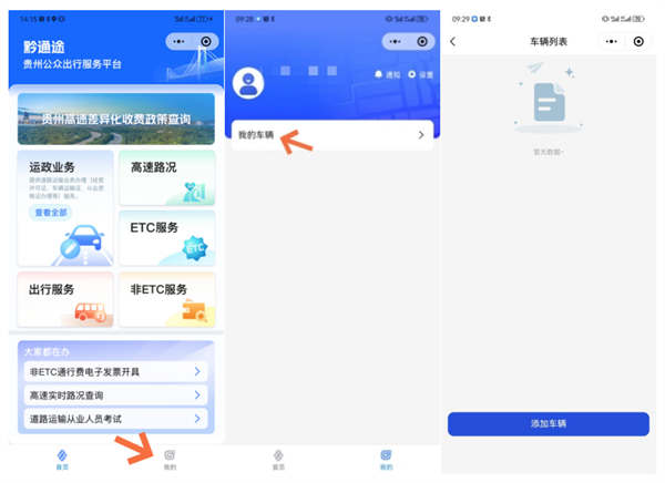 点击下方【我的】,登录并点击【我的车辆】进行车辆添加: