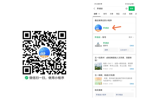 微信扫描“黔通途”小程序二维码或搜索“黔通途”小程序: