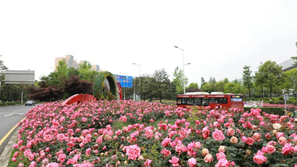 初夏时节,观山湖区石林西路的月季花迎来盛放期,粉的娇羞、金的灿烂、红的热烈,多种颜色的月季花争奇斗艳,将车水马龙的道路,点缀成一条如梦似幻的缤纷“花路”。