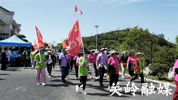 上午10点,在健身教练带领下,全场徒友集体跳起健身操,动感的音乐、充满活力的律动,瞬间将现场氛围拉满。授旗仪式后,徒步活动正式开始,在旗手带领下,数千名徒友有序排列,挥舞着红旗,向着茶山行进。