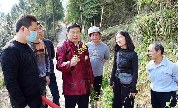 唐海华到冷水溪镇红星村带领村民辨识中医药。