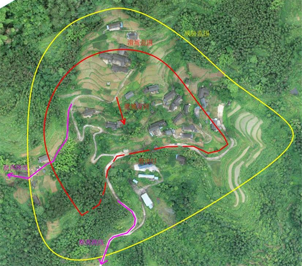 冷水溪镇三脚坡村向家坡组滑坡示意图。
