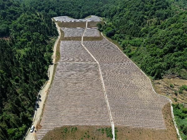 在盘兴铁路大樟古隧道弃渣场现场,大型机械正对高低不平的渣土进行分层整平,覆土后形成连片梯田。项目还配套建设水泥道路和灌溉系统,大幅提升土地生产条件。目前,盘兴铁路三标已有4个弃渣场完成移交,179亩复垦土地种植了烟叶、玉米等经济作物。当地烟农感叹:“这里复垦后成了‘金饭碗’,每亩收入翻了一番!”