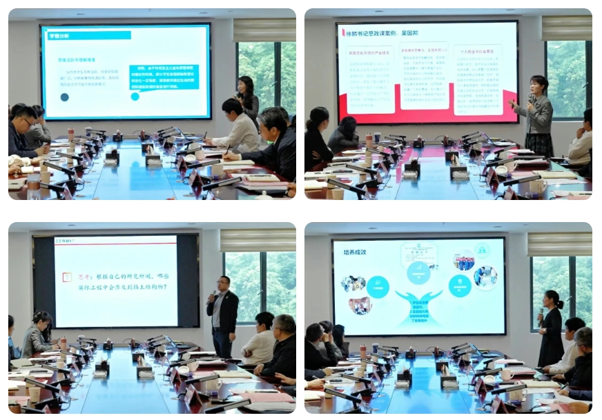 贵州理工学院郭勤艺、甄江燕、田兴朝、徐桂弘四位老师分别选择了《马克思主义基本原理》《中华民族共同体概论》《土力学》《基础工程》的相关章节开展说课,充分呈现了教材分析、学情分析、教学目标、教学重难点、教学方法、教学过程及教学反思等课程设计上的思考与创新,详细介绍了贵州“四大文化工程”、贵州脱贫攻坚取得的巨大成果、贵州人战天斗地的典型案例、贵州道德楷模和身边榜样以及大国工匠精神等融入课程的路径和方法,令全体参会人员深受启发。