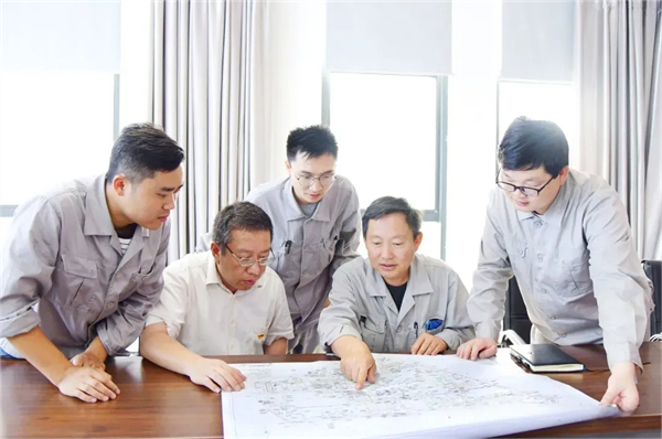 图为高级技师、第十二届全国技术能手获得者、贵州黔希化工有限责任公司一级技能师高建军(右二)在其领办的“高建军技能大师”工作室作技术指导。