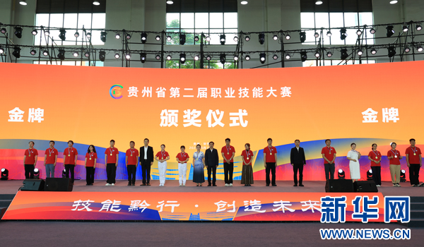 贵州省第二届职业技能大赛闭幕式现场的颁奖环节。新华网 李涛涛 摄