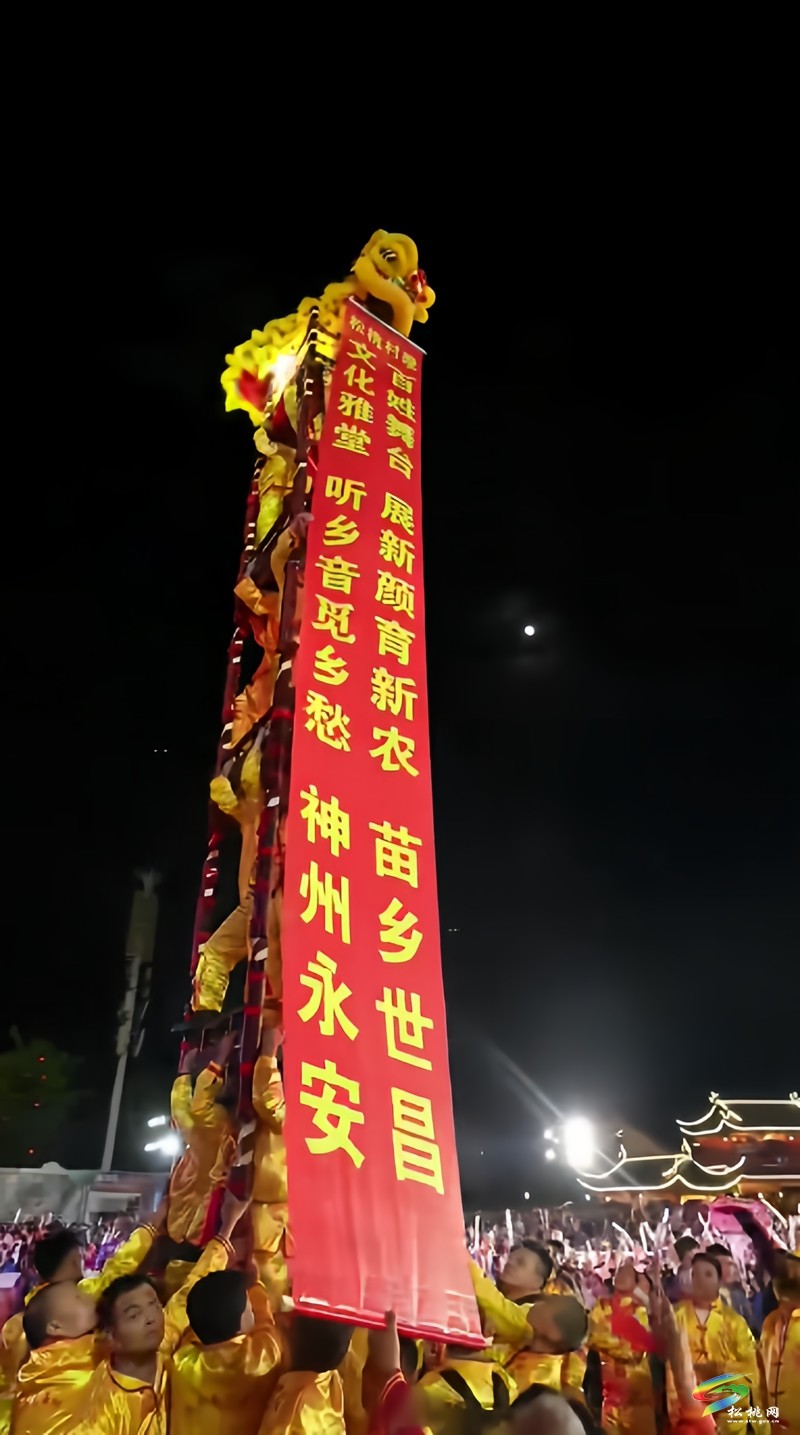 9米高台、狮口大张,一副对联倾泻而下——上联“百姓舞台,展新颜育新农,苗乡世昌”,下联“文化雅堂,听乡音觅乡愁,神州永安”。这是在第八期的松桃“村晚”舞台上引得满堂喝彩的一幕,47岁的陈寒锋举起狮头,60岁的陈应贵充当狮尾,两人默契配合,凭借精湛的技术和过人的胆气,成为当晚的焦点。