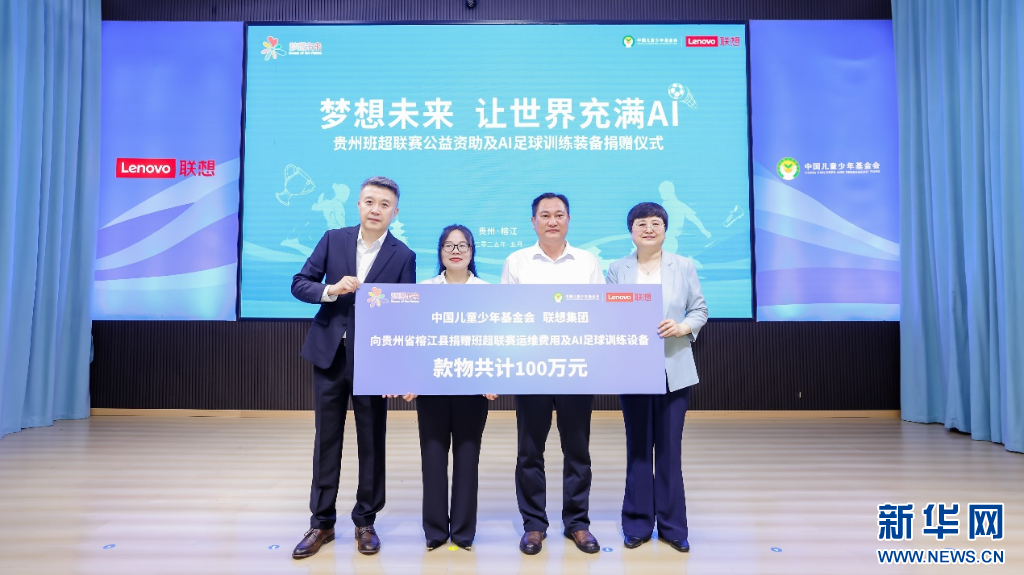 新华网贵阳5月21日电(记者王泓楗)21日,联想集团联合中国儿童少年基金会在贵州省榕江县古州镇第四小学举行“梦想未来”公益项目贵州榕江捐赠仪式。活动现场,联想集团与中国儿基会向榕江县捐赠款物总计100万元。其中,70万元将用于购置AI PC及AI智能足球设备,30万元用于支持24所小学开展校园足球班级联赛,以“AI+体育”为乡村教育注入新动能。