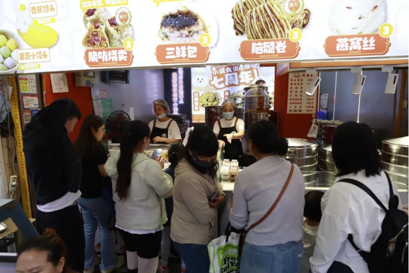 “为了让大家品尝我家产品,我们结合去年巡游人流量的情况考虑,今年特地做了准备,由平时营业时间7点至20点,延长到了7点至22点。同时,增加了2名工作人员,共有5名人员在店里忙碌。”小磷食面点铺子负责人吴晓爱介绍,他们提前对招牌产品,如脆哨烧麦、脑髓卷、破酥包等准备了比平时多出3倍的备货量,而且在今天中午时,脆哨烧麦就已经卖出了三十多笼,平时同一时段仅卖出十多笼。