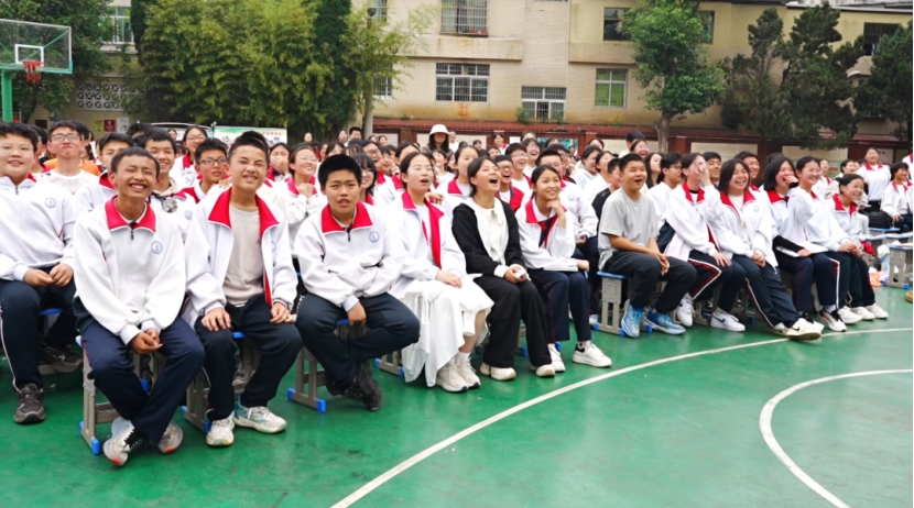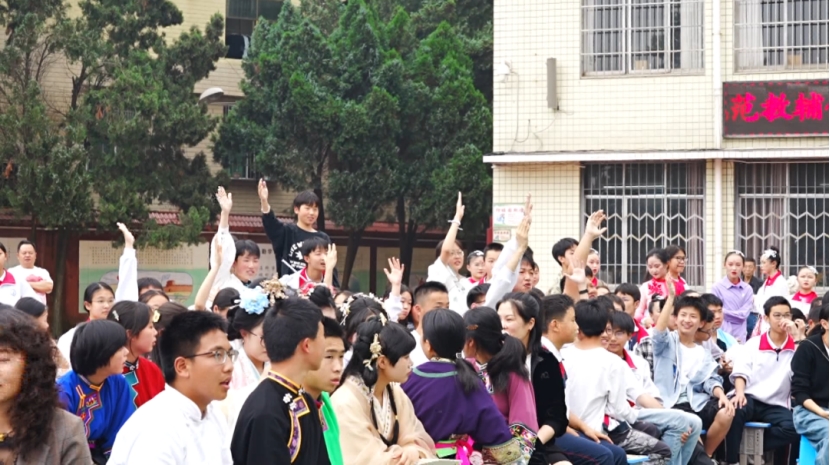 台下的观众们屏息凝神、目不转睛,曲终掌声雷动,不时传来阵阵喝彩声。活动特别设置互动问答环节,将语文知识融入趣味问答,学生们举起如林的手臂,抢答声此起彼伏。