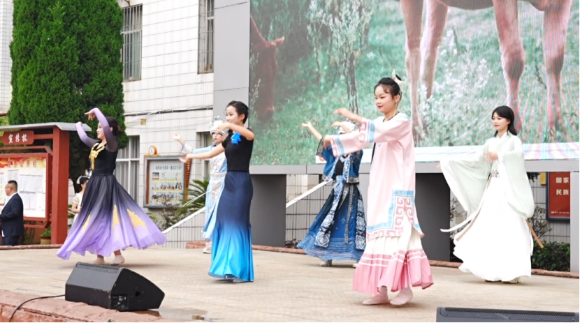 民族舞蹈《民族团结一家亲》《彩云之南》《民族舞串烧》以灵动身姿诠释文化“美美与共”;现代歌舞《灯火里的中国》《一起向未来》用时代韵律传递奋斗激情;英语配音《赵一曼的故事》创新演绎红色经典;屯堡文化主题走秀《六百年花信十二阙屯堡》将屯堡记忆与春日繁花巧妙融合,在舞台上次第盛放。