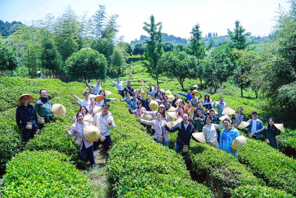 活动当日,风和日丽,云山茶海景色如画,层层叠叠的茶树宛如绿色波浪,在微风中轻轻摇曳。大家迅速融入自然,化身“采茶人”,穿梭于茶树间,按照专业指导小心翼翼地采摘鲜嫩的茶芽,指尖轻触叶片,感受着大自然的馈赠,欢声笑语回荡在茶海之中。