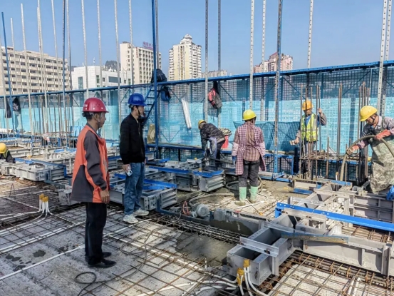 相关负责人介绍,目前施工工程机具投入楼塔吊2台、井道内专用施工电梯2台、外挂式施工提升机1台、复合板切割机(机电部)1台。同时,现场施工作业人员包含项目管理人员、施工生产技术人员、质量技术人员、专职安全员、机电管理人员共计213名。为有效保障工程质量和建设速度,项目组科学统筹调配人、材、机等资源,持续强化现场工序衔接和安全生产保障跟踪,定期组织施工人员进行施工技术交底,进一步明确施工方法、技术措施、质量要求,确保项目按计划稳步推进。(陈静柔)
