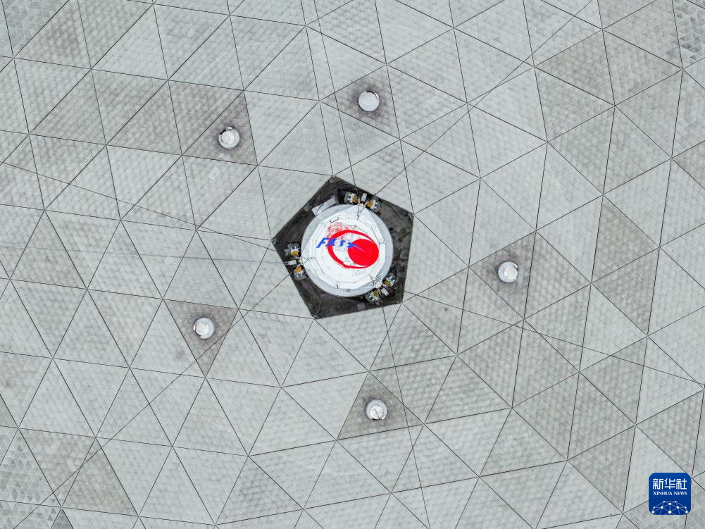 这是2月18日拍摄的“中国天眼”馈源舱(无人机照片,维护保养期间拍摄)。新华社记者 欧东衢 摄