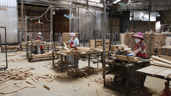 榕江县农村劳动力在家门口的木材加工厂就近就业场景。