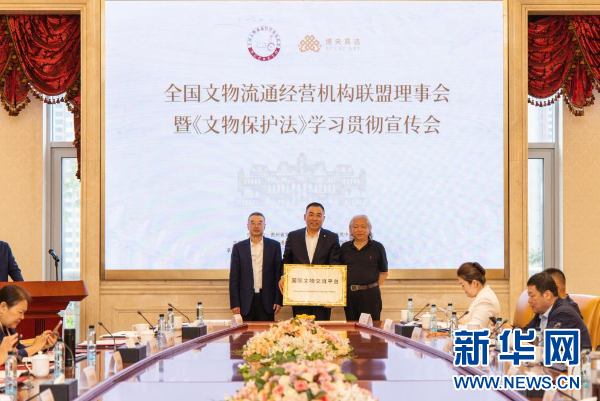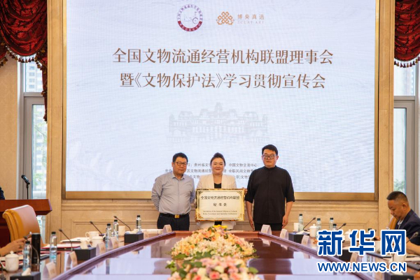新华网贵阳5月25日电 近日,全国文物流通经营机构联盟理事会暨《文物保护法》学习贯彻宣传会,在贵阳博央艺术国际交流中心隆重举行。来自全国各地的文物领域专家学者及全国文物流通经营机构代表齐聚贵阳,共同见证国际文物交流平台与全国文物流通经营机构联盟秘书处在博央艺术国际交流中心挂牌揭幕,共议文博事业与文化产业融合发展。