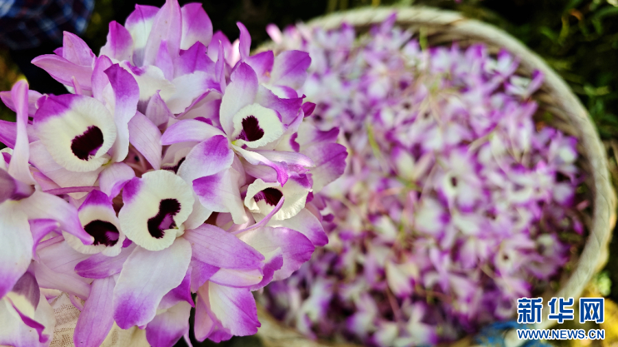 在赤水市宝源乡联华村,金钗石斛花开正艳。新华网发(张浪摄)