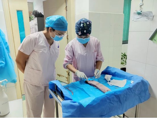 手把手“授之以渔”的匠心坚守。“缝合的不仅是伤口,更是产妇的尊严。”代晓涛将这句话刻进每位学员心里。从用牛舌头模拟到临床实战,她手把手指导学员们完成复杂会阴裂伤缝合10例、宫颈裂伤缝合3例、阴道壁裂伤缝合10例,血肿清除缝合术1例。深夜的产房里,她一边附身为产妇轻柔按摩会阴,一边讲解会阴按摩术在第二产程中的运用。在产妇分娩时,她又反复示范如何用单手控制胎头娩出速度,让“适度保护会阴技术”取代传统托举法,会阴按摩术与“适度保护会阴技术”的运用可减轻会阴裂伤、产妇疼痛、感染、愈合不良等情况,提升孕妇分娩体验感。自开展此项新技术以来,会阴完整性(无裂伤)率增加19%,裂伤率降低11%。