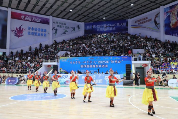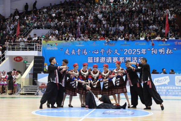 5月26日,“爽爽贵阳·心学修文”2025年“阳明杯”篮球邀请赛开幕式在修文县体育馆举行。