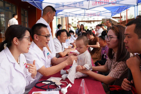 佛山医疗专家在丹寨县人民医院为当地老百姓开展义诊活动。