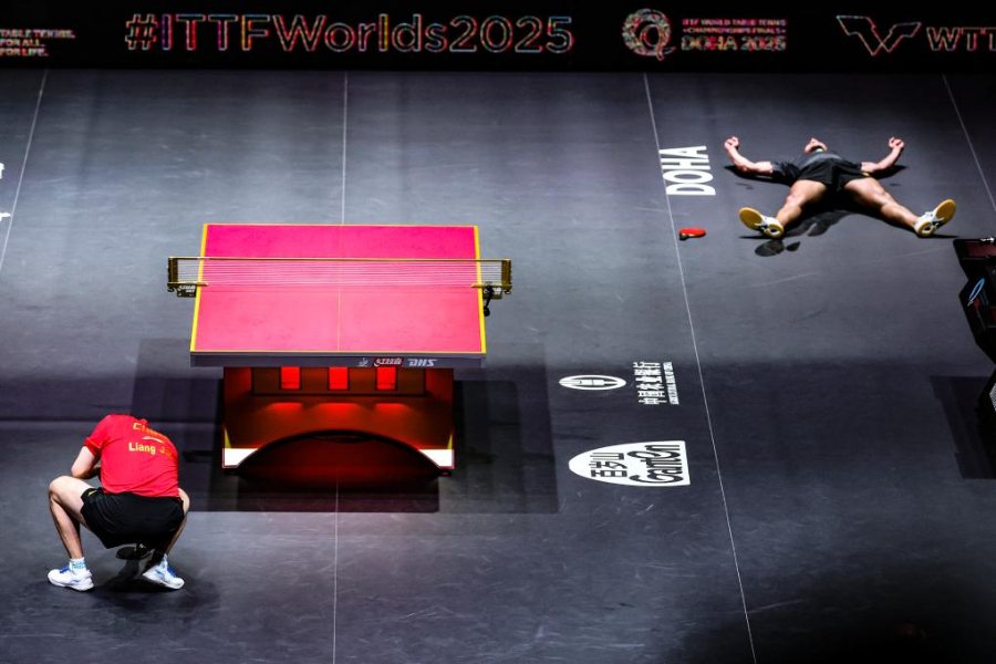 5月25日,多哈,45摄氏度高温,2025世乒赛决赛硝烟正烈。上万名来自中国的球迷让卢赛尔体育馆人声鼎沸,他们手举五星红旗,热情如同沙漠中的热浪。一名当地人和我说:“我从来没见过这么多的中国人!”