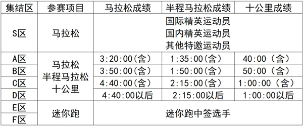 ▌分区方式:按特邀运动员(马拉松)、全半程及十公里大众运动员按成绩混合分区(按获得参赛资格的运动员在中国马拉松信息平台上2023年1月1日至2025年3月31日期间举办的认证级别为“A1类赛事”的马拉松项目或半程马拉松项目的最好成绩作为分区依据)、迷你跑运动员分区检录集结,各区域间距10米。