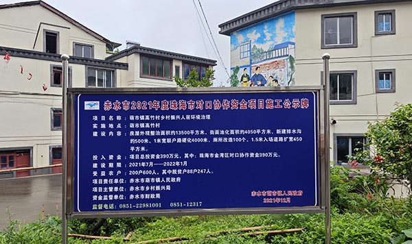 葫市镇高竹村乡村振兴人居环境治理项目公示牌。(张浪 摄)