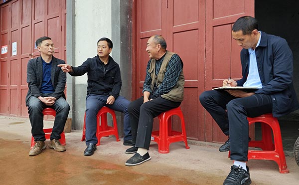 村民李洪伦与前来走访的党支部书记翁乾和村干部们谈变化。(张浪 摄)
