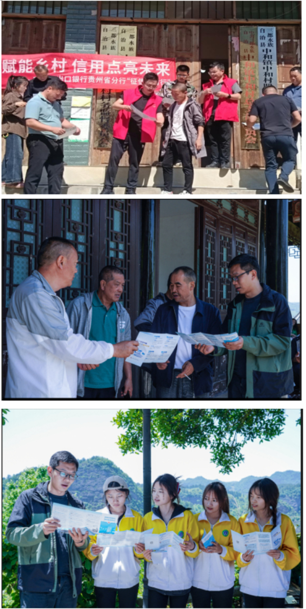 近日,为贯彻落实人民银行征信为民“三项行动”工作部署,中国进出口银行贵州省分行(下称分行)分别在黔南州三都县中和村和开阳县禾丰乡马头村开展“征信乡村行”征信知识宣传活动,赴贵州财经大学开展“征信校园行”征信知识专题讲座。