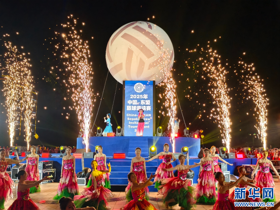 新华网贵阳6月1日电 5月31日晚,2025中国-东盟藤球邀请赛在贵州省黔南布依族苗族自治州惠水县开幕。来自中国、泰国、马来西亚、菲律宾、越南、老挝、缅甸、柬埔寨的八支藤球劲旅,将在这里参加为期四天比赛。