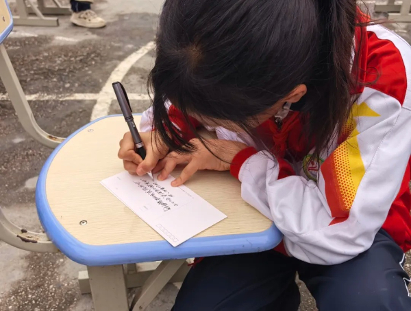 在“时光信箱”环节,学生们将对未来成长的期许认真地写在明信片上,小心翼翼地投入信箱。这些承载着梦想的明信片将由学校妥善保存,待学生们参加小学毕业典礼时开启,以此激励他们朝着既定的成长目标奋勇前进。