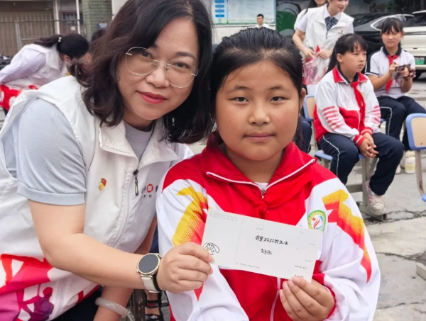 经过前期银校精准对接,志愿者们提前认领了30名困难学生的“微心愿”,并精心准备了超出预期的爱心礼物带到活动现场。统一的全新书包里,不仅装有水杯、运动鞋等学生们心愿单上的物品,还藏着零食、衣物等意外惊喜。当孩子们接过充满爱意的礼物时,稚嫩的脸庞上绽放出灿烂的笑容,洋溢着满满的幸福感。孩子们真挚的反应,让志愿者们深刻体会到践行社会责任的重要意义。