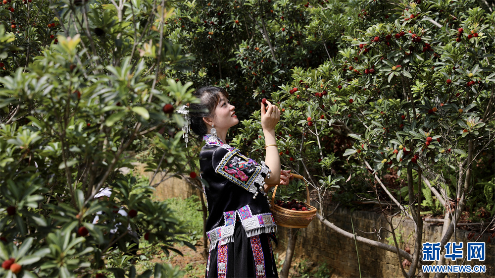 6月1日,游客在罗甸县边阳镇杨梅采摘园采摘杨梅。新华网发(石建生摄)