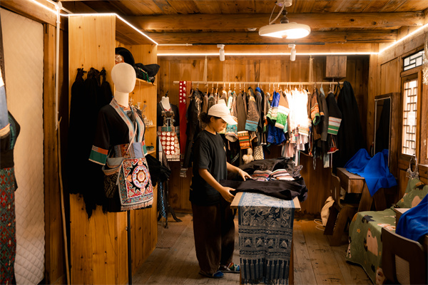 2023年12月,她的店正式开业。22万的投资中,一大半花在了服装上。“店里所有服装均来自村寨收购或手工定制,盛装均价1万元以上,便装也要几百块,但我们收的大多是当地人淘汰的二手衣服。”杨莉解释,“这些衣服绣法随时代变化,老一辈不穿了,但保存完好,这样反而更具历史感”。为了收集服饰,她跑遍了黔东南的村寨,甚至请绣娘复刻稀缺款式。