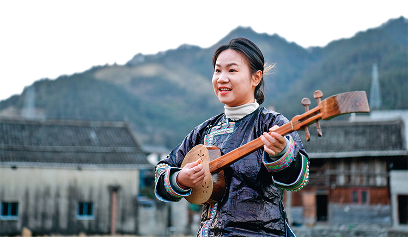 杨想妮在贵州省榕江县忠诚镇乐乡村练习侗歌弹唱(2025年2月8日摄)。杨文斌摄/本刊