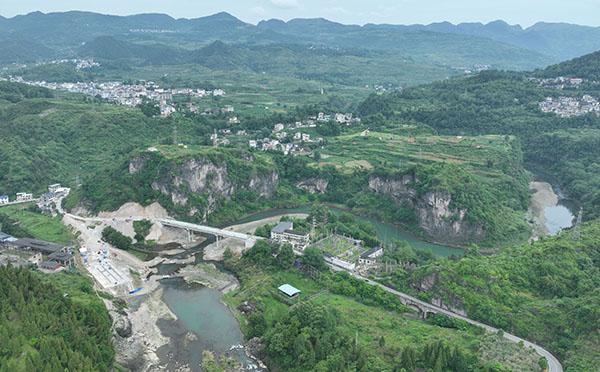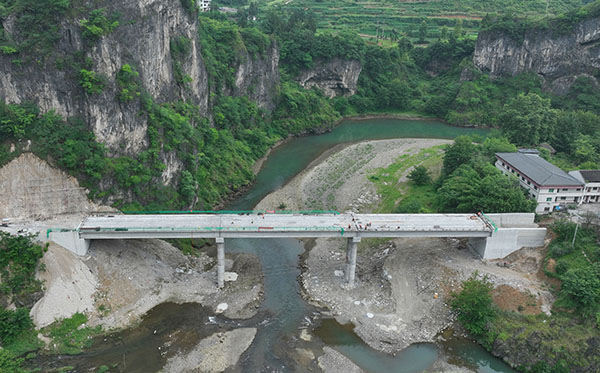 6月4日,位于松桃苗族自治县木树镇的虎渡口大桥危桥改造工程进入最后冲刺阶段。(谢慧芳 摄)