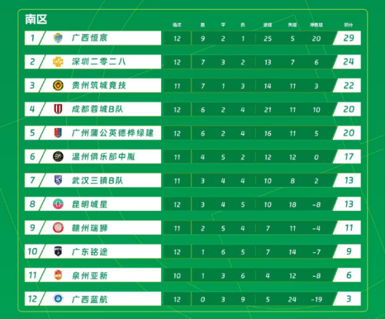 2025华润饮料中乙联赛预赛阶段自3月22日开赛以来,贵州筑城竞技已完成11场预赛阶段比赛,以7胜1平3负22积分的战绩暂列南区积分榜第三位。