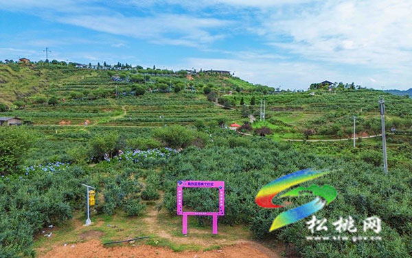 眼下正是蓝莓成熟季,松桃苗族自治县黄板镇苗妹子生态园内游人如织,热闹非凡。6月4日,苗妹子生态园里一片繁忙景象,游客们穿梭在缀满白色、蓝色绣球花的小径间,或在蓝莓丛中专注采摘,或手持饱满的蓝莓拍照留念,欢声笑语与清新的果香交织弥漫。