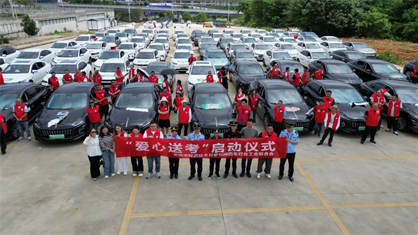 启动仪式现场,上百辆张贴着“爱心送考”醒目标识的车辆整齐排列,蓄势待发。成为一道亮丽的风景线。它们将在高考期间穿梭于城市的大街小巷,为考生们的逐梦之路保驾护航。