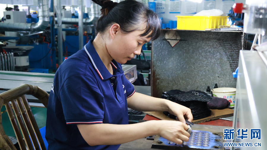 返乡工人吴富娟在工作。新华网发(彭语馨 摄)