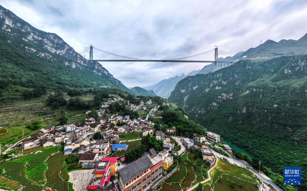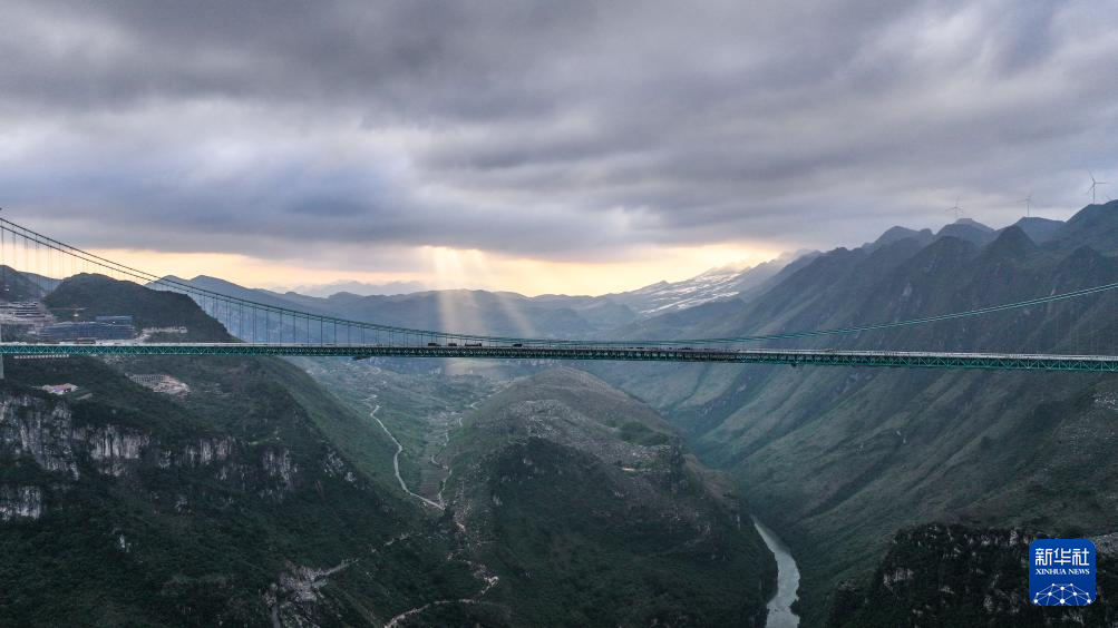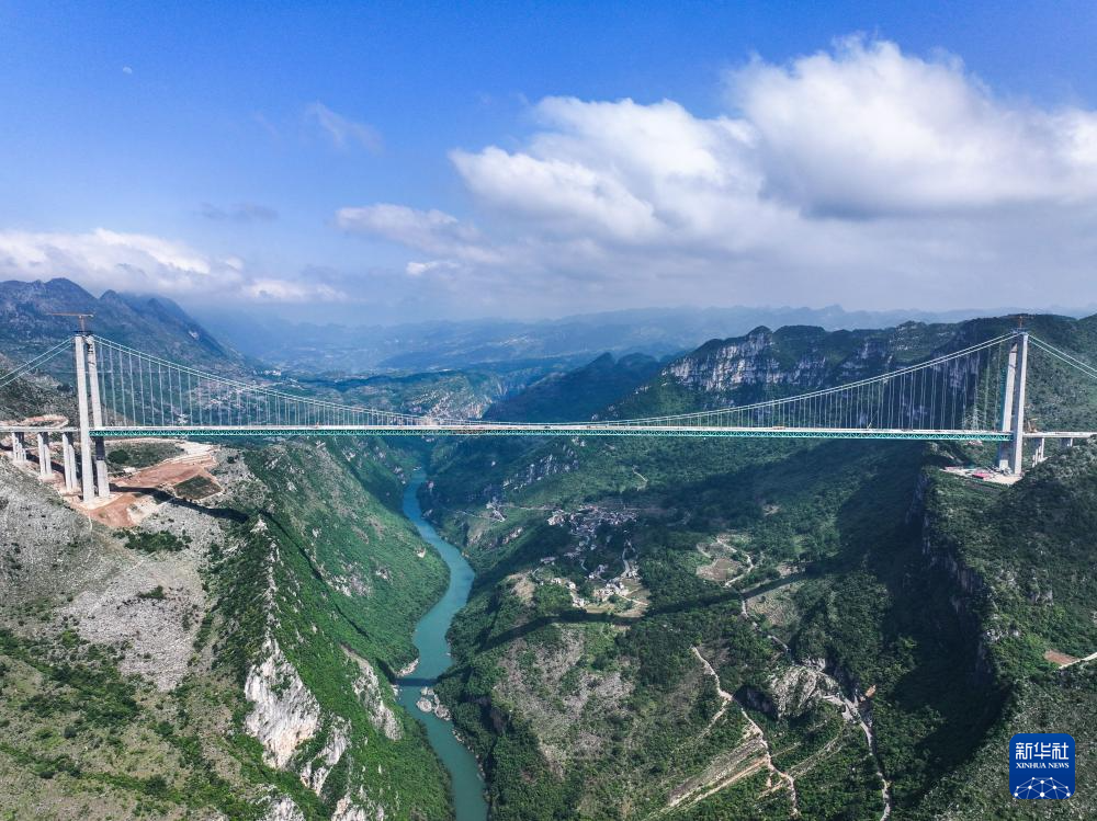 花江峡谷大桥是贵州六安高速公路的控制性工程,全长2890米、桥面距水面高625米,预计今年下半年建成。大桥建成后,将成为世界第一高桥,擦亮中国基建新名片。