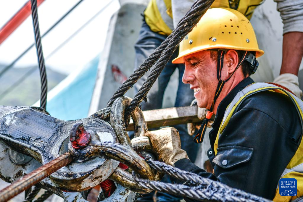 6月6日,工人在贵州花江峡谷大桥上施工。新华社记者 杨文斌 摄