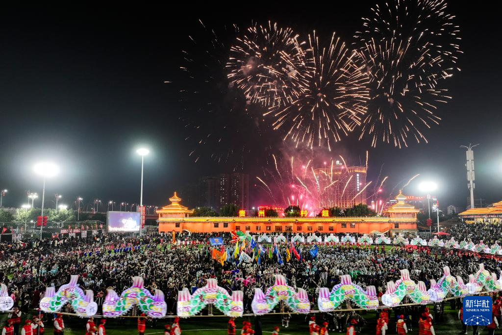 2025年1月4日,人们在贵州榕江县举办的“村超村晚”活动中表演非遗节目“多耶”(无人机照片)。新华社记者 杨文斌 摄