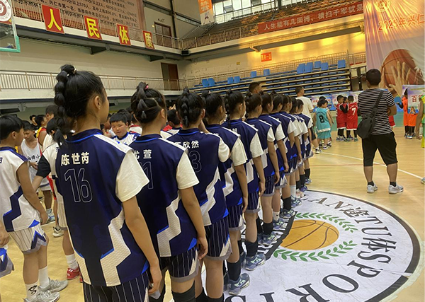 “小辫子”篮球队参加篮球比赛开幕式。