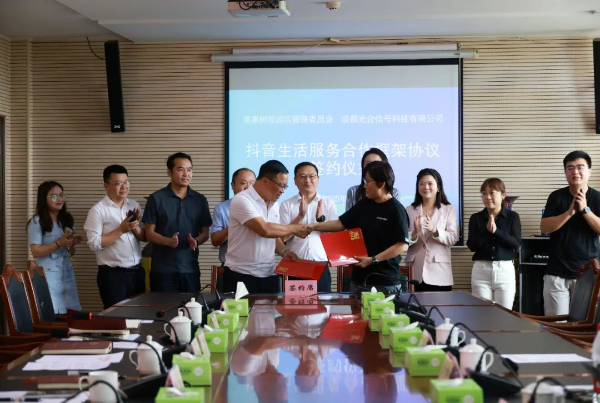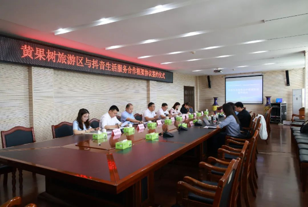 6月5日,黄果树旅游区管理委员会与抖音生活服务合作框架协议签约仪式举行。区党工委副书记、管委会主任曾琨,抖音集团本地生活服务游玩一区负责人戴璐代表双方签约。区党工委委员、管委会常务副主任朱霞益主持签约仪式,双方各有关负责人参加。