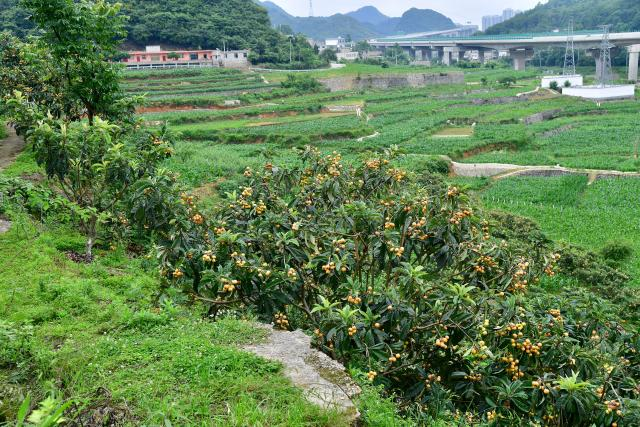漫山遍野的枇杷树在阳光下熠熠生辉